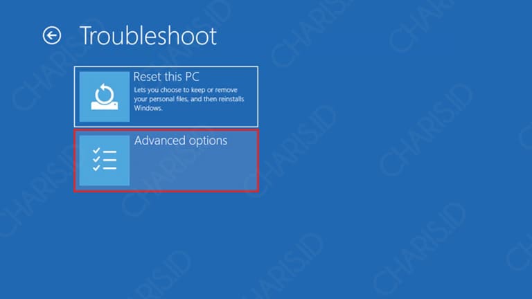 Pada layar Troubleshoot, pilih opsi “Advanced Options”.