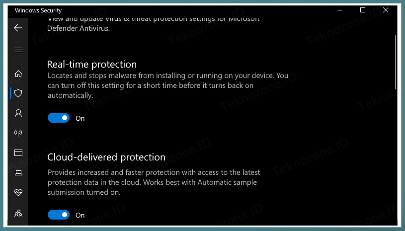 2. Pada bagian Real-time protection, ubah tombol “Off” menjadi “On”.