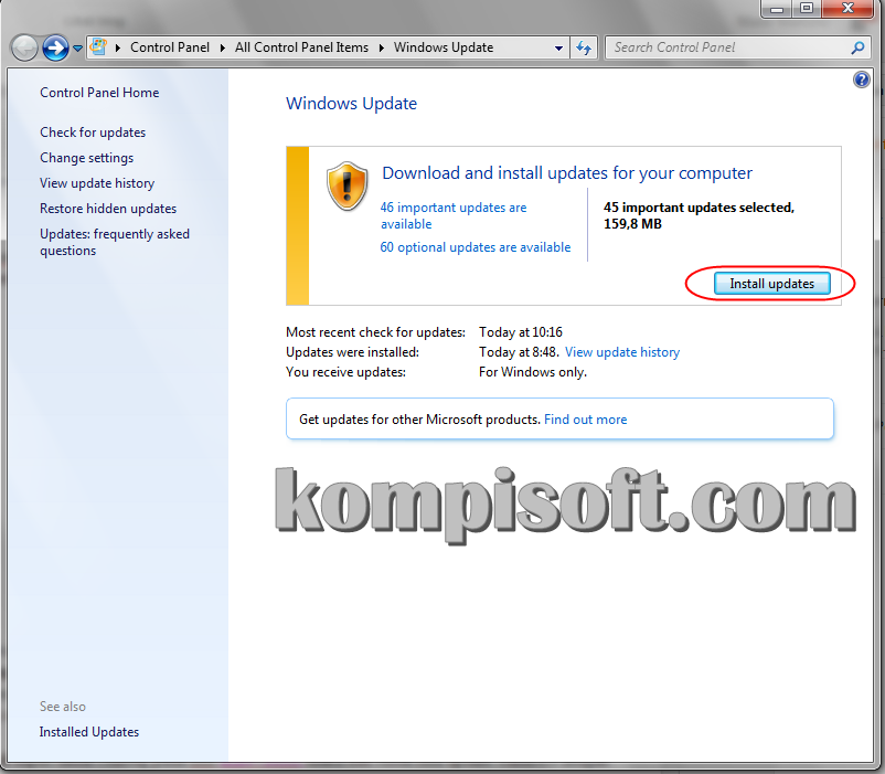 2. Klik “Install” atau “Install updates” untuk memulai proses instalasi.